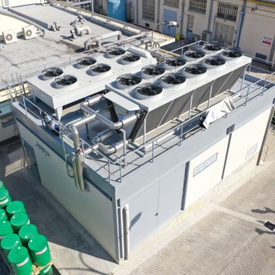 - The cooling installation makes use of a glycolic water chiller to keep the water entering the liquid ring of the vacuum pumps at 7ºC.